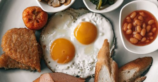 Sytá drožďová pomazánka s uzeninou, vejci a sýrem, podávaná na chlebu.