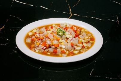 Z tuku a mouky připravíme jíšku, rozředíme trochou vychladlého vývaru a vlijeme do polévky. Přidáme česnek utřený se solí, pepř, na nudličky nakrájenou zeleninu, vše důkladně promícháme a vaříme asi 10 minut. Mezitím nakrájíme na kostičky slaninu, rozškvaříme a osmahneme na ní nadrobno nakrájenou cibuli, opečeme na kolečka pokrájený párek a zpěníme papriku.