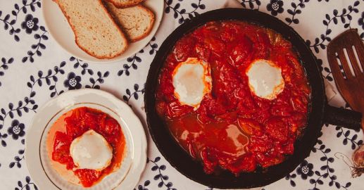 Srbská šakšuka — vejce pečená v kořeněné rajčatové omáčce s paprikou