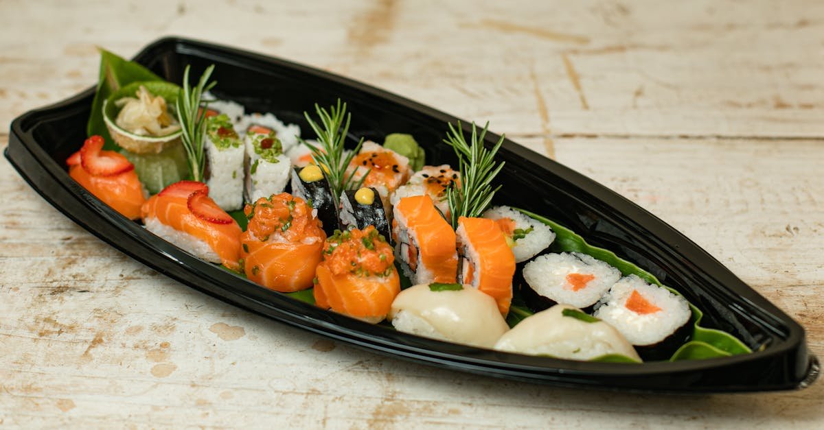50 g zázvor (oloupaný kořen) 10 g řasa Comba (pro vaření rýže) 50 ml ocet Mitsukan (na zálivku) 20 g japonský cukr (na zálivku) 5 g sůl (na zálivku) 100 g tuňák (syrový, na nigiri) 100 g losos (syrový, na nigiri) 100 g chobotnice (syrová, na nigiri) 100 g krevetu (předem spařená) 4 ks mořská řasa Nori (na maki) 50 g bílé ředkve (na servírování) 50 ml sójová omáčka Kikkoman (na namáčení)