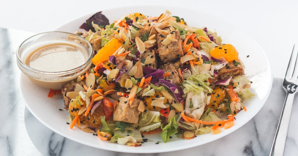 Lehký vegetariánský salát z uzeného tofu s čerstvými pomeranči, klíčky a asijskou sójovou zálivkou. Osvěžující a zdravé jídlo s výraznou chutí.