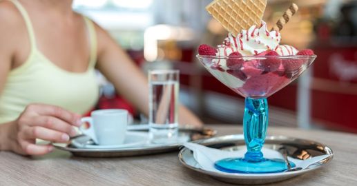 Dezert poprášíme cukrem a přelijeme polevou.